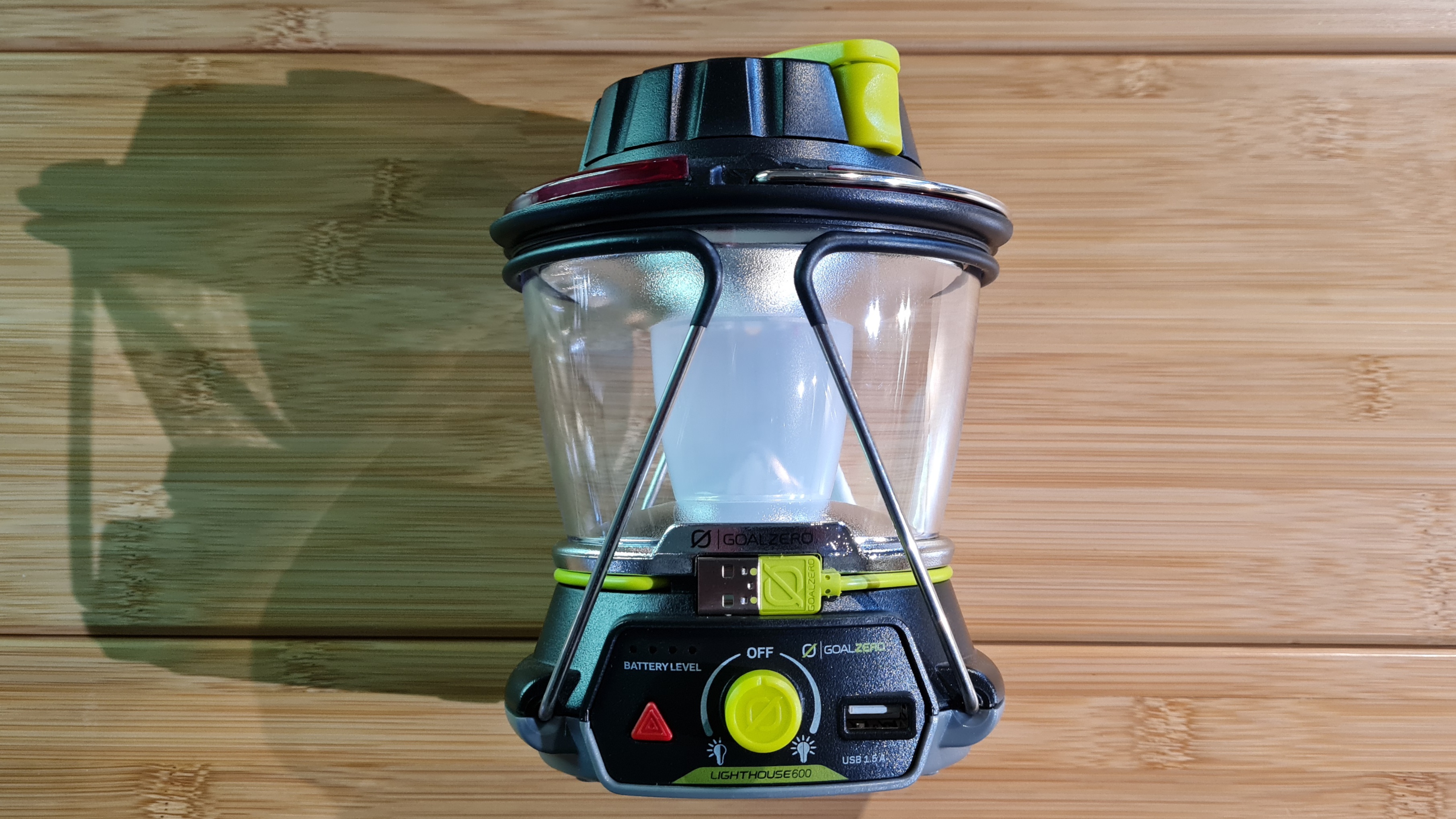 Die Goal Zero verfügt über 2 x 3 Watt warm-weiße LED mit bis zu 600 Lumen. Durch die zweifachen LEDs kann die Lampe blendfrei betrieben werden. Sie ist über USB aufladbar. Im Notfall sogar über eine Handkurbel. ( eine Minute Kurbeln - 10 Minuten Licht! ) .Außerdem kann der 5200 mAh Lithium Ionen Akku auch als Power Bank genutzt werden.Größe: 11,4 x 12,7 x 16,5 Gewicht: ca. 500 g Ladezeit ca. 6 Stunden. Laufzeit niedrigste Stufe einseitig 320 Stunden! Hellste Stufe beide Seiten: 2,5 Stunden